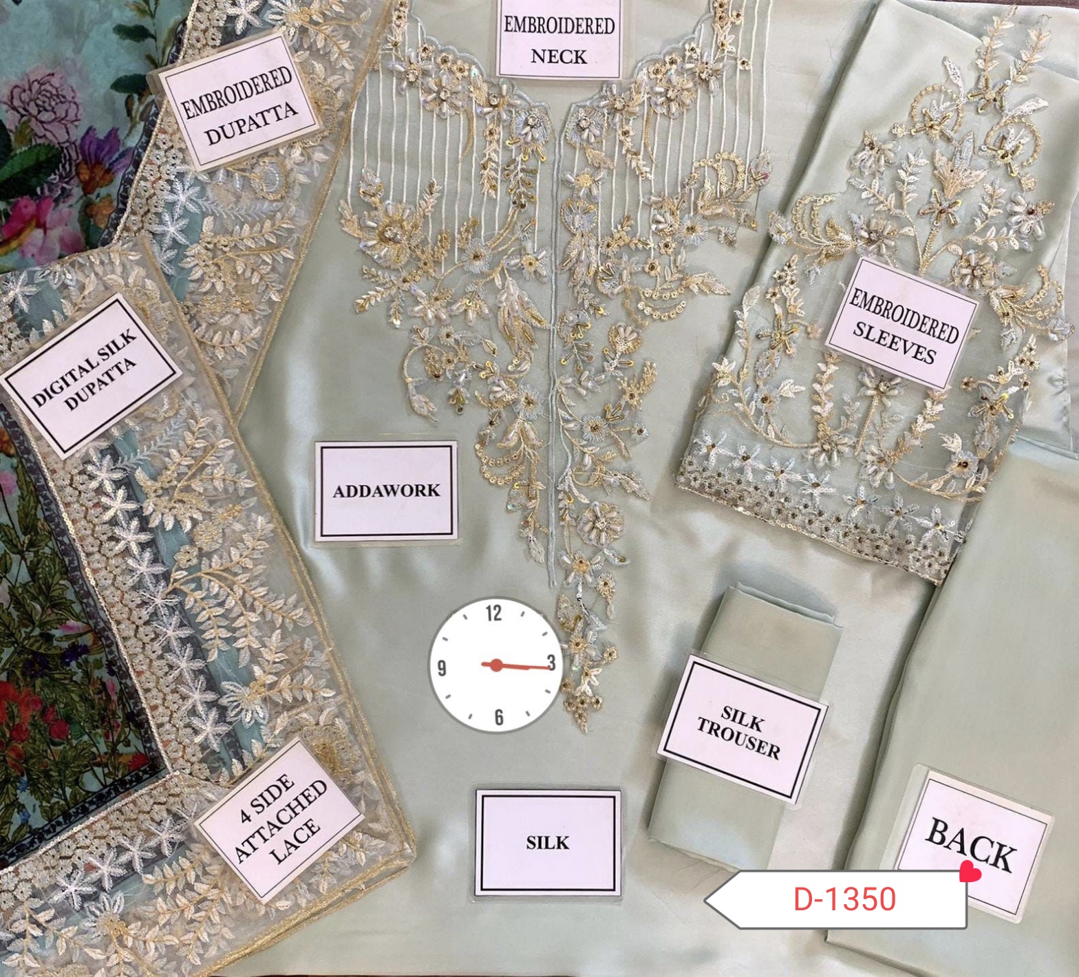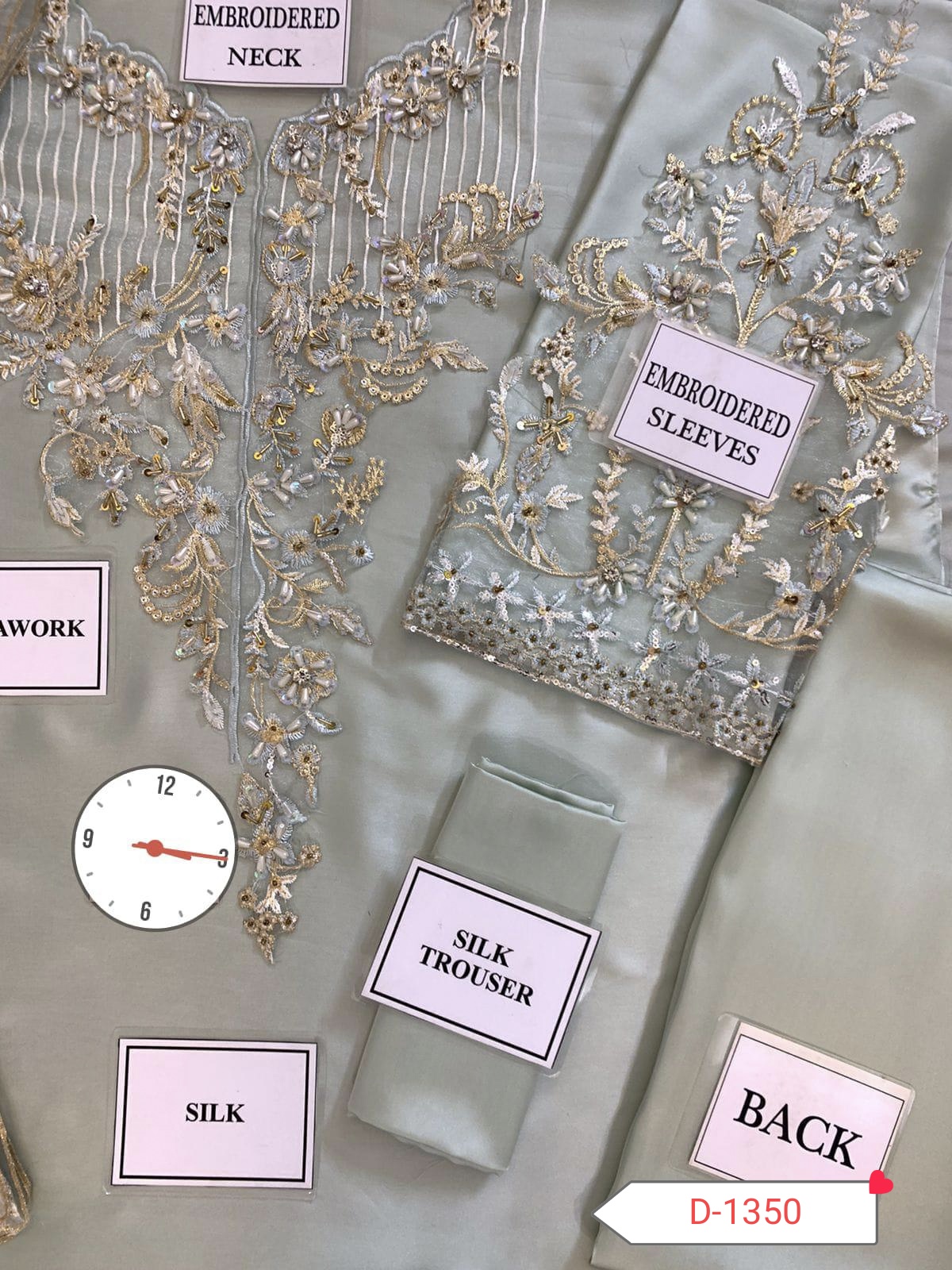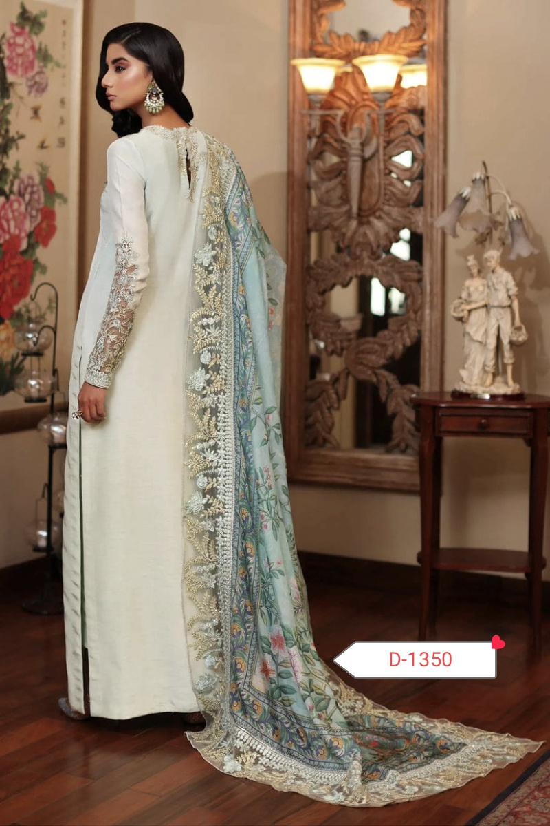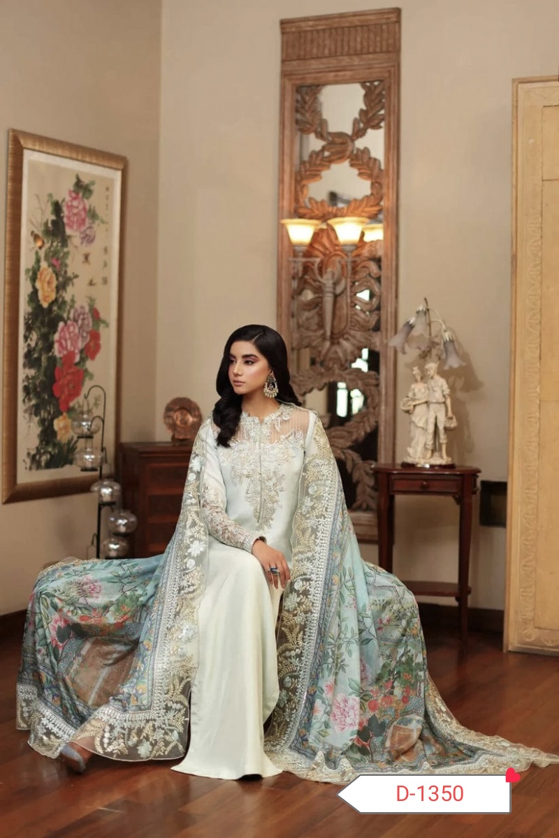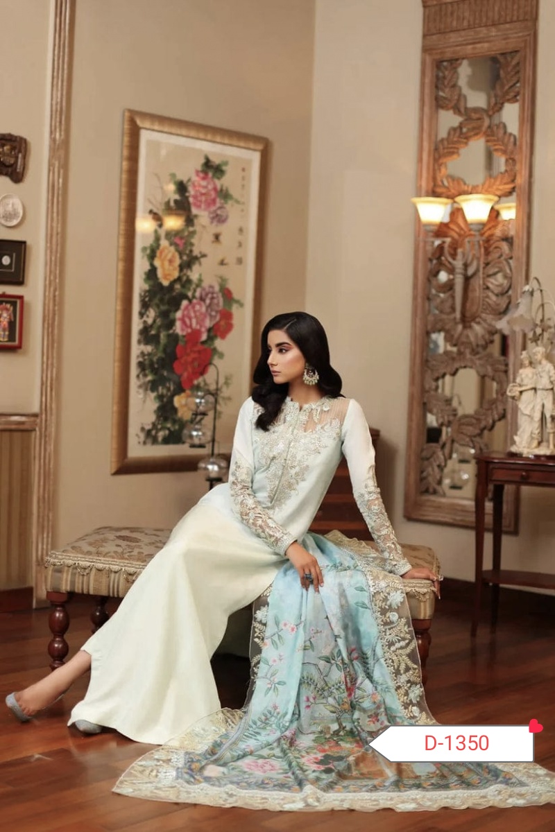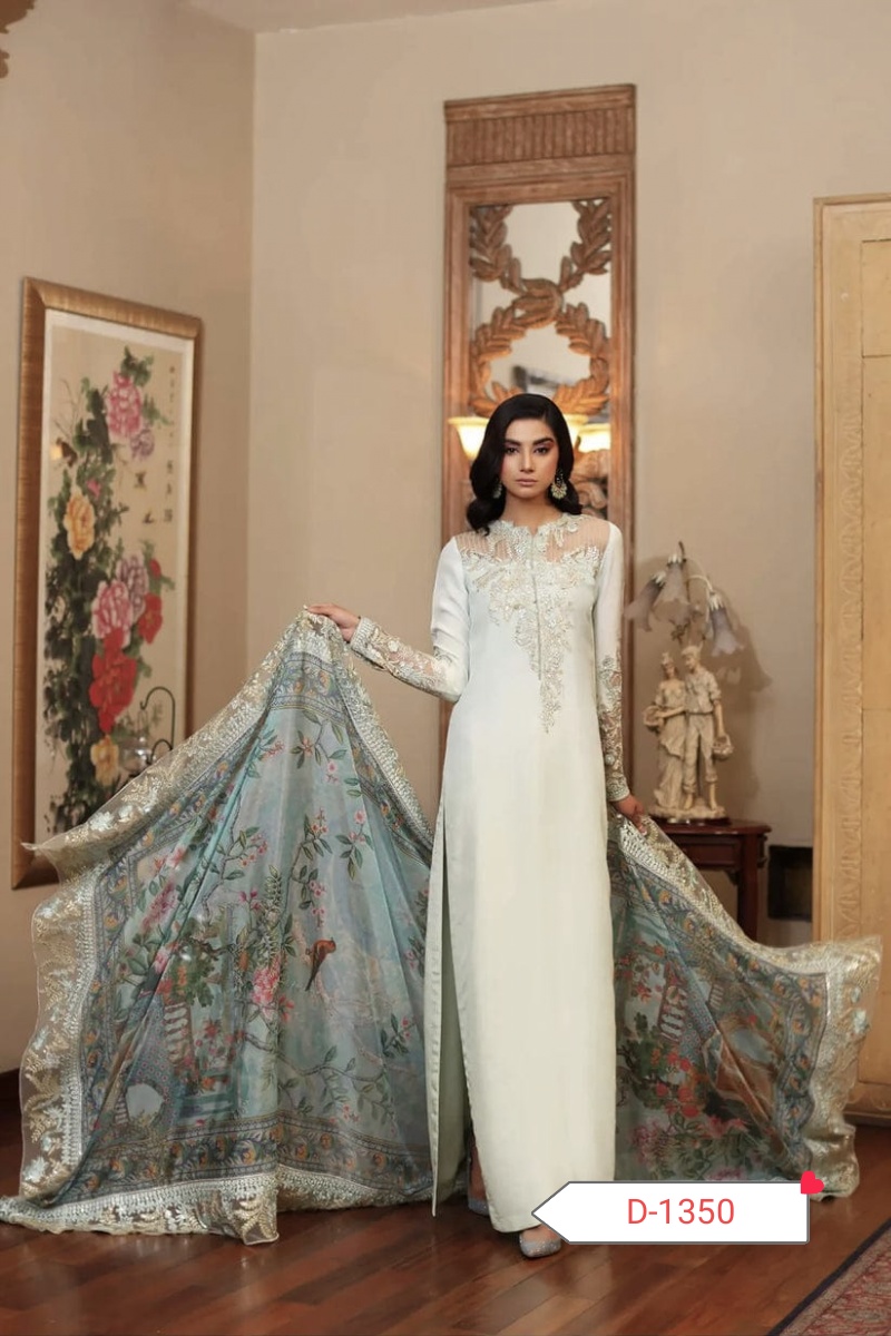 Step into elegance with the D-1350 Silk Embroidered Collection, crafted from pure soft Charmuse silk for the shirt, trouser, and sleeves. This luxurious outfit is perfect for weddings, festive occasions, and formal events, offering comfort and style in one exquisite package. 🌸
