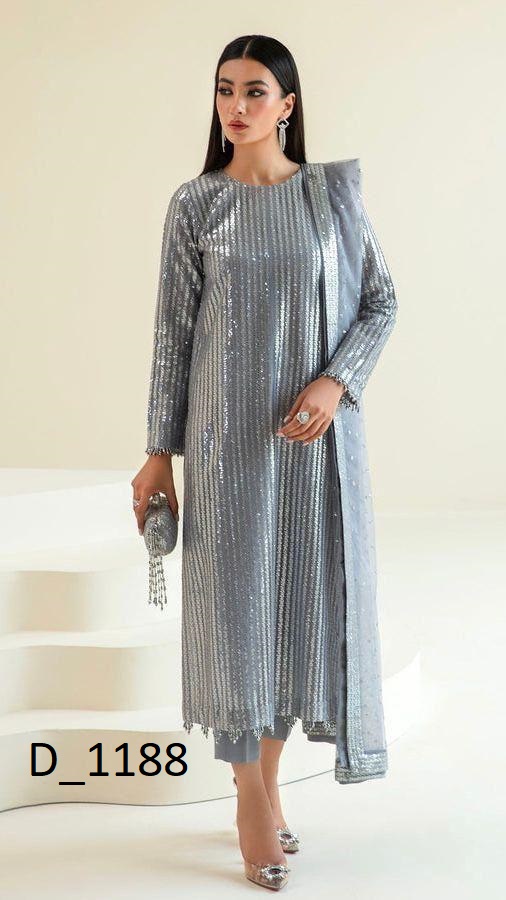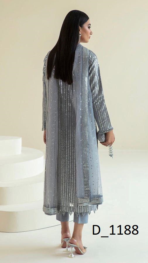 •Semi Pure Chiffon Back with fully embroidery with heavy sequence work as like original