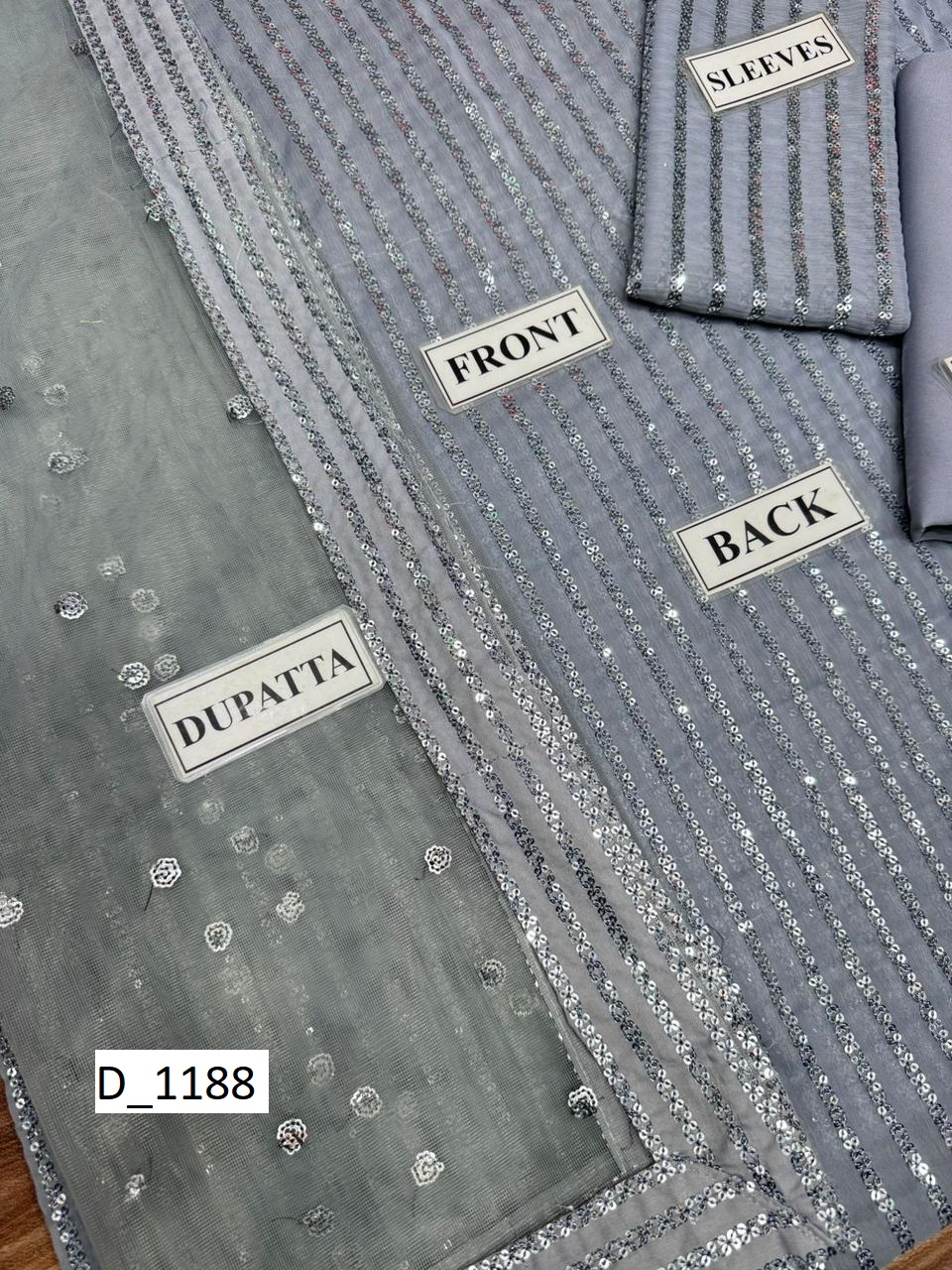 •Semi Pure Chiffon Front Embbroidry with heavy sequence work extremely high quality finishing