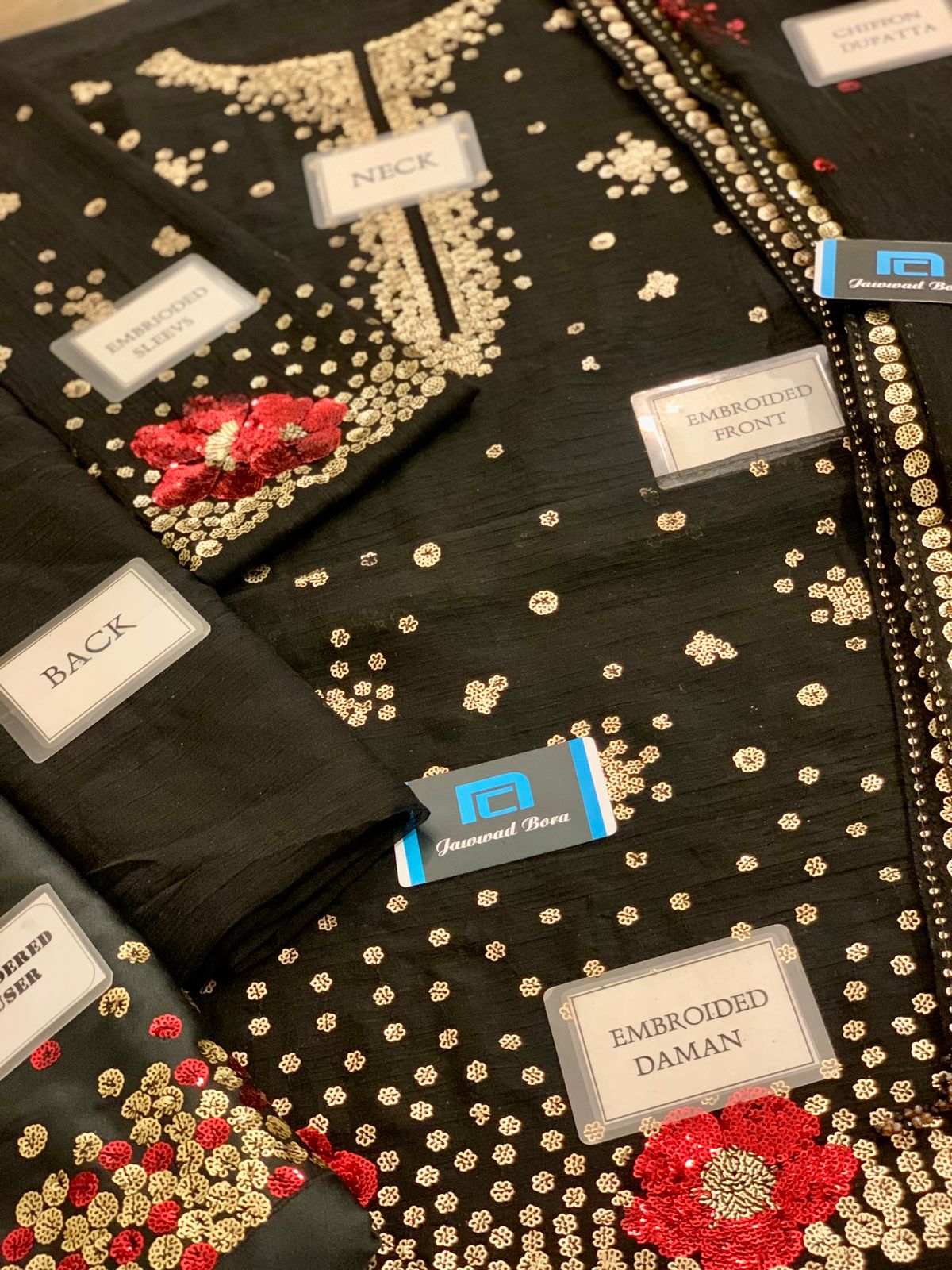 *chiffon fully heavy embroidered front with heavy embroidered daman boarder with heavy embroidered work chak*