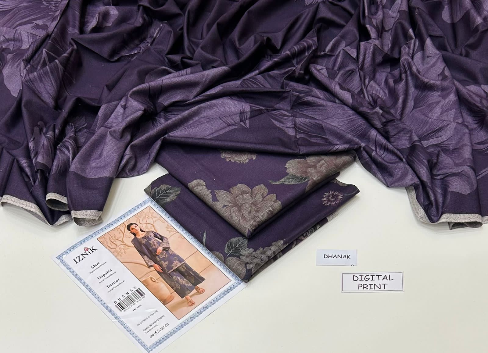 DHANAK 3PC With Digital Printed Shawl (FREE DELIVERY)