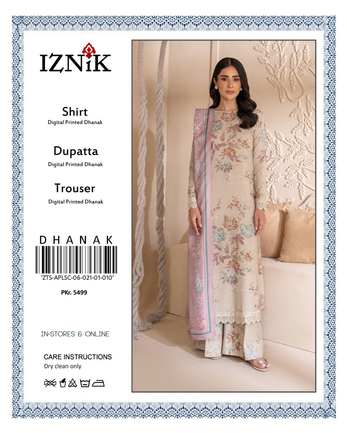 DHANAK 3PC With Digital Printed Shawl (FREE DELIVERY)
