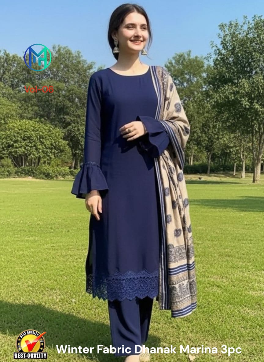 Embrace the winter elegance with our 3-piece Fancy Marina Suit, crafted from pure soft Marina fabric. The set includes a warm plain shirt, matching trouser, and a luxurious Jacquard Tilka Shawl with heavy velvet work — the perfect mix of comfort and festive style.