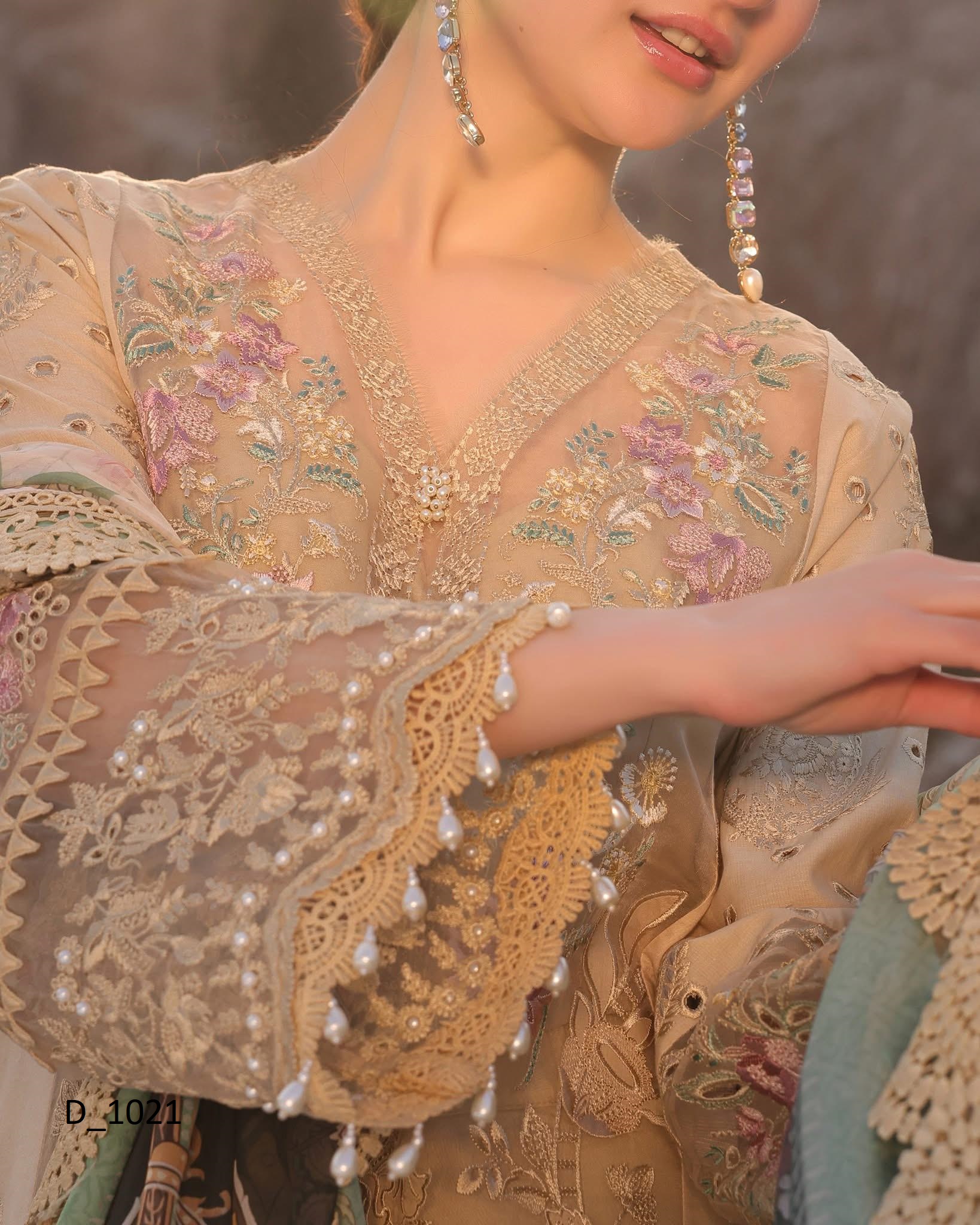 - Master Copy*, Premium Quality Guaranteed - Front:* Fully Embroidered Cotton with Organza Embroidered Center Panel and Laser Cut Side Panels