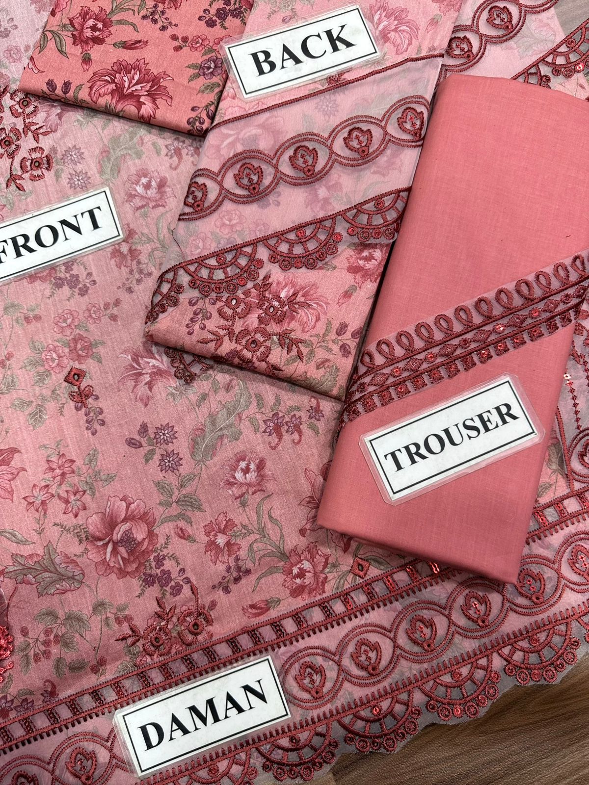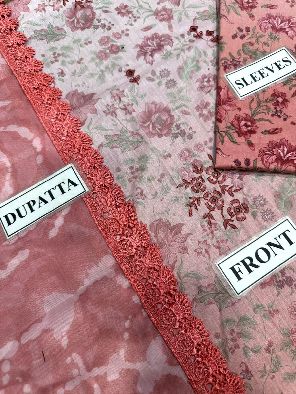 *Front* Premium printed pure lawn with *intricate heavy 🪡 embroidery on fabric*,
