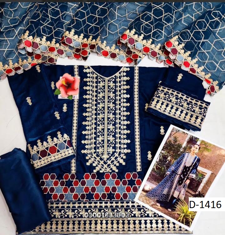 Discover elegance with the D-1416 Maya by Afrozeh Velvet Suit, a luxurious ensemble designed for weddings, parties, and formal occasions. Featuring rich velvet fabric paired with an embroidered organza dupatta and soft silk/satin trouser, this ready-to-wear outfit combines style and comfort effortlessly. 🌸