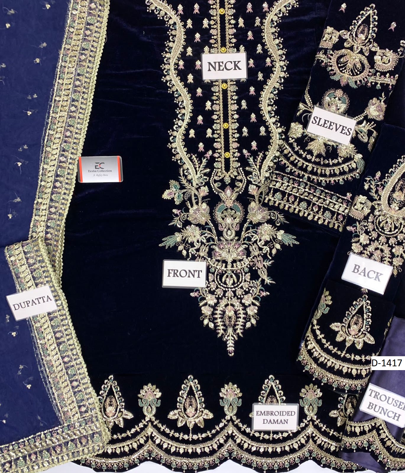 Step into luxury with the D-1417 Maya by Afrozeh Velvet Suit, a perfect combination of velvet elegance and intricate embroidery. Designed for weddings, parties, and formal events, this ready-to-wear suit ensures a flawless look with premium fabrics and detailed craftsmanship. 🌸