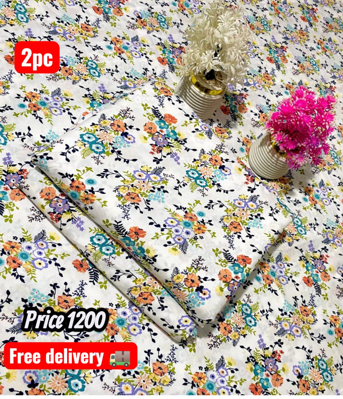 Mid Summer 2025 – Unstitched 2-Piece Floral Suit | Rooma Polo Cotton