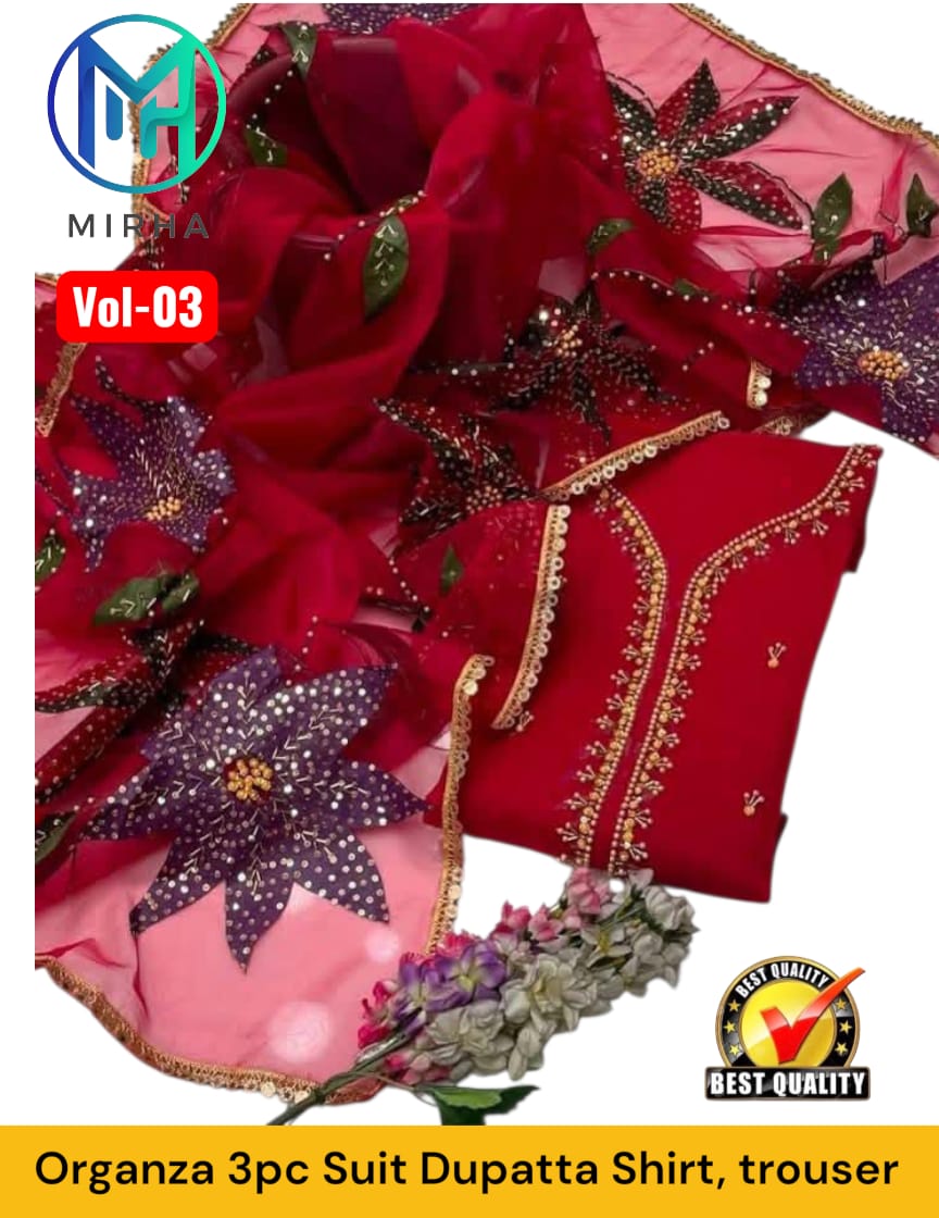 New Collection – 3PC Handwork Organza Dress with Zari & Beads