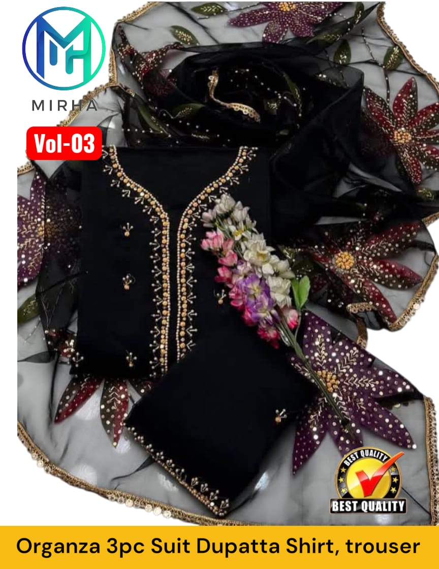 New Collection – 3PC Handwork Organza Dress with Zari & Beads