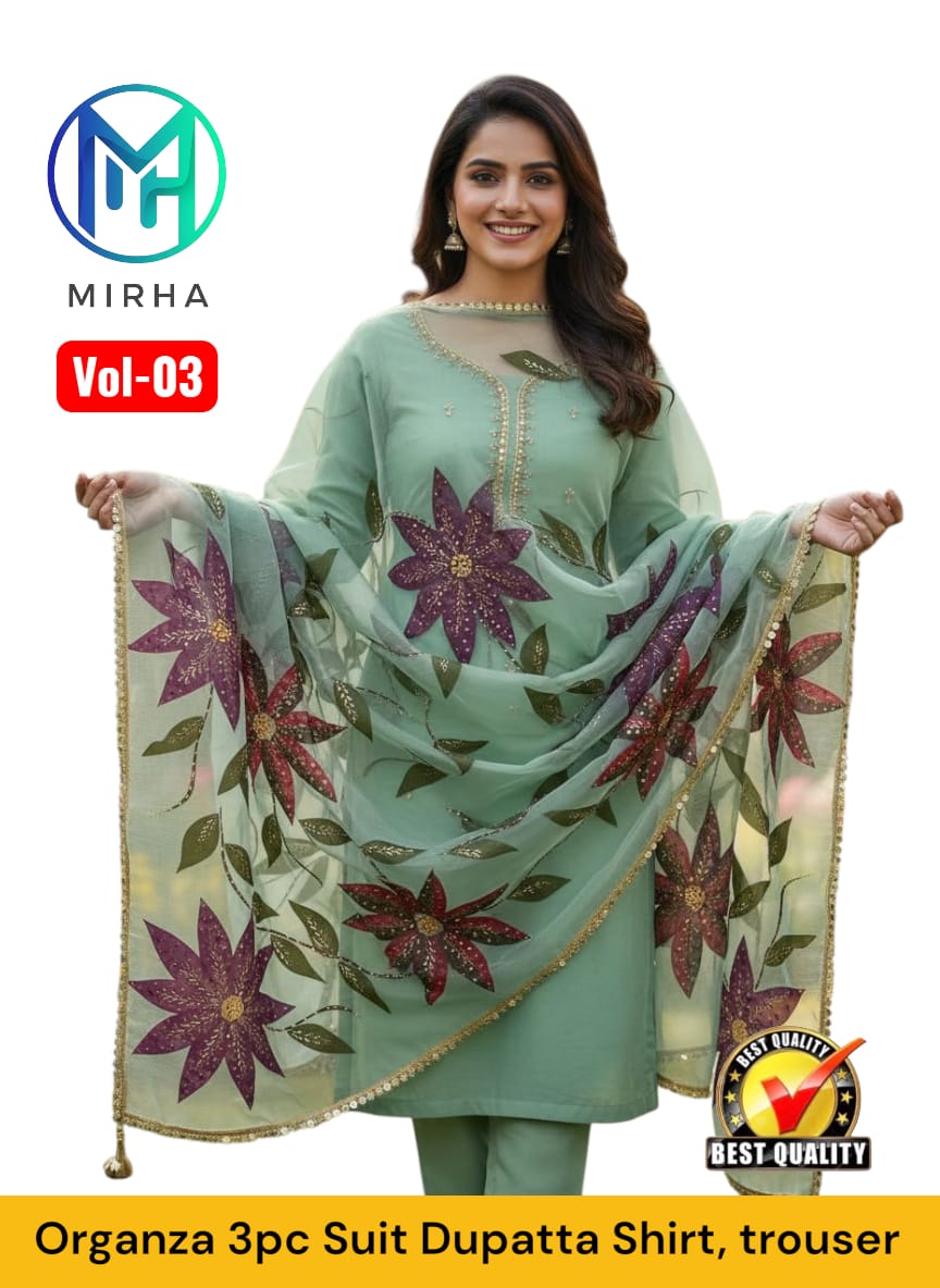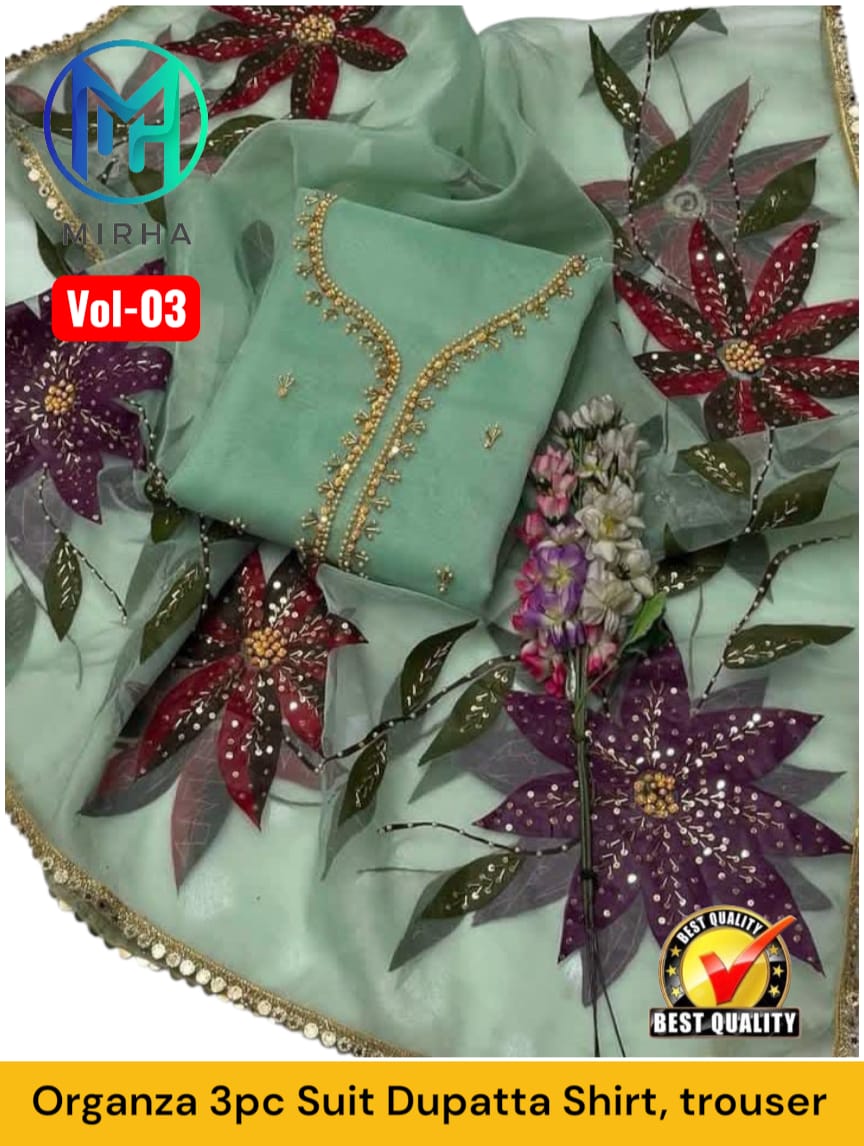 New Collection – 3PC Handwork Organza Dress with Zari & Beads
