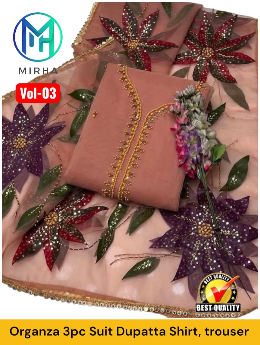 New Collection – 3PC Handwork Organza Dress with Zari & Beads