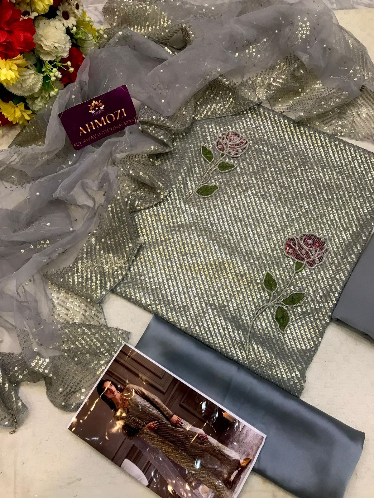 :*Nureh Midnight Article* Unstitched 03 piece suit
